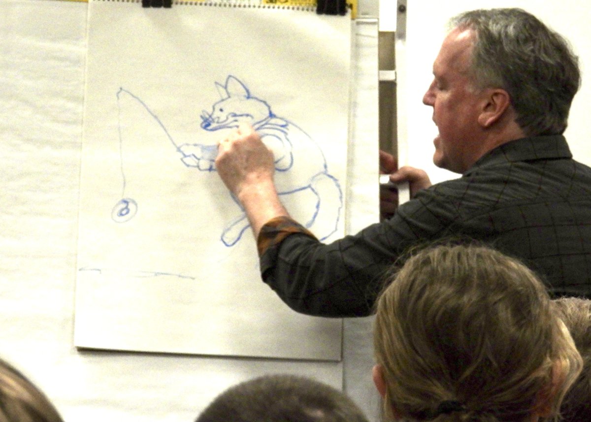 For its 21st Literacy Day, MSW invited award-winning author and illustrator Brian Lies to speak with Simond’s Elementary School students. Brian quickly engaged students by asking them to complete the statement: “Practice makes…?” Thinking they knew the answer for sure, students shouted, “Perfect!” To their surprise, Brian responded by saying no one is perfect. Instead, he emphasized, “Practice makes better!” To illustrate his point, Brian shared numerous drafts of his stories and drawings, each one a little better. He even let students see a storyboard he created as a 2nd grader to show that hard work and practice are more essential for success than inborn talent. After demonstrating a quick character sketch, Brian handed out a signed copy of one of his books to each student. Kindergarten and 1st Graders received Little Bat in Night School. 2nd and 3rd graders received Bats at the Beach, and 4th and 5th graders received The Rough Patch, a Caldecott Honoree.